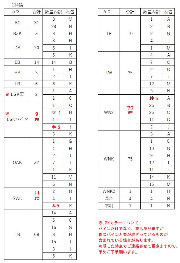 ※カラーLGKにはパインだけでなく栗が数束あります。
